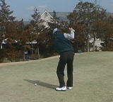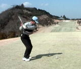 やや膝が大きく動くショットでしたが、フィニッシュは決まっています。