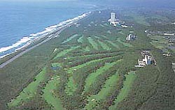 フェニックスカントリークラブは「ダンロップフェニックストーナメント」の舞台として、世界にその名を知られる27ホールの名門コース。場所は太平洋を望む風光明媚な日向灘にあり、樹齢150年を越える約60万本の黒松林にレイアウトされたシーサイドコースです。特に、「風」、「松林」という自然のハザードが大きな特徴となっています。同コースは、住吉、高千穂、日南の3コース(各9ホール)で構成され、トーナメントでは住吉、高千穂が使われます。「第29回ダンロップフェニックストーナメント」は11月21日(木)から開催されますが、世界最高のスーパースター、タイガー・ウッズをはじめディフェンディングチャンピオンのデビッド・デュバルやセルヒオ・ガルシアら世界の強豪が参加を決め一段と注目される大会になるでしょう。名挑会メンバー4名はこの名門コースに挑戦すべく、格安ゴルフツアーに乗って遠路宮崎までやって来ました。芝の補修で本グリーンが使えないところもありましたが、チャンピオンティー(フルバック)からのティーショットも許され満足するラウンドとなりました。何といってもティーショットが難しく、左右の松林に入れると1打や2打のペナルティは覚悟しなければなりません。住吉コースの8番パー3,9番パー5ではツアー選手になった気分でプレーしましたが、トーナメントプロがテレビで見せる華麗なプレーとはほど遠くゴルフの難しさを改めて認識しました。でもこのハーフ、石井氏は38回とプロ級のスコアーであがり、有川氏も40回とこれまた素晴らしいスコアーでしたが小沼氏、栗原はいまいち、スコアーは内緒にしろとの天の声でノーコメントで~す。