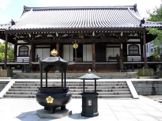 | 真言宗智山派の総本山である智積院は天正13年 (1585) 豊臣秀吉によって焼払われた根来山の塔頭を前身とし、徳川時代になって五百仏頂山根来寺智積院と改名された。弘法大師を宗祖、興教大師を真言宗中興の祖と仰ぎ、真言宗智山派3000余寺の総菩提所・総祈願所として多くの参拝者を迎えています。山内には20余りの堂塔伽藍が峰より連なる緑深い木々に抱かれ特に、名勝庭園は石組と刈込で中国の盧山の形容を模した名園として名高い。さらに、智積院には貴重な文化財も多く、特に桃山時代に長谷川等伯らによって描かれ祥雲禅寺の客殿を飾っていた金碧障壁画 (「楓図」「桜図」「松と葵の図」「松に秋草図」など)も保存され、わが国一級の文化遺産として国宝にも指定されています。 なお、私の実家でお世話いただくお寺がこの真言宗・智山派であり是非一度、総本山を拝観したいと思っていたところでした。 |