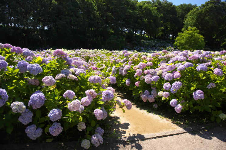 「アジサイの丘」から「だんだん原っぱ」へ向かう・・・涼しげに咲く紫陽花たち