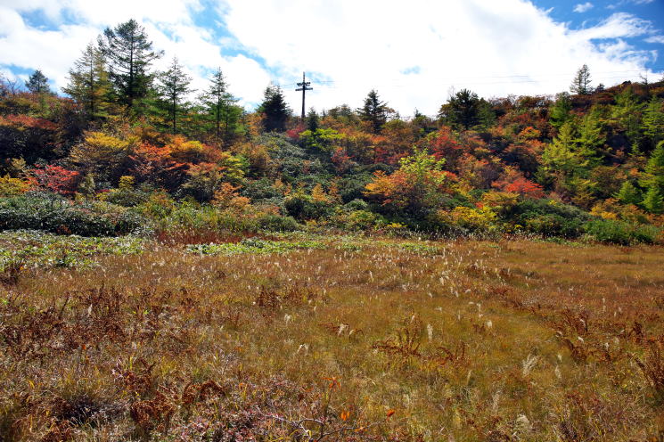 | 草津白根山の紅葉として、白根火山ロープウェイ山麓駅のすぐ下にある武具脱の池と白根火山ロープウェイに乗って見る紅葉をまとめました。以前8年前に、芳ケ平自然遊歩道から常布の滝に向かい、その道のりや常布の滝周辺の見事な紅葉に出会いましたが、今回は草津白根山の紅葉ということで訪ねてみました。天気は秋晴れらしい空模様でしたが、白根火山ロープウェイ山頂駅付近は立ち込めた雲(霧)に覆われ、この付近の紅葉や神秘的な湯釜を見ることはできませんでした。よって、湯釜を見るのはまたいつかのお楽しみとしましょう。 |