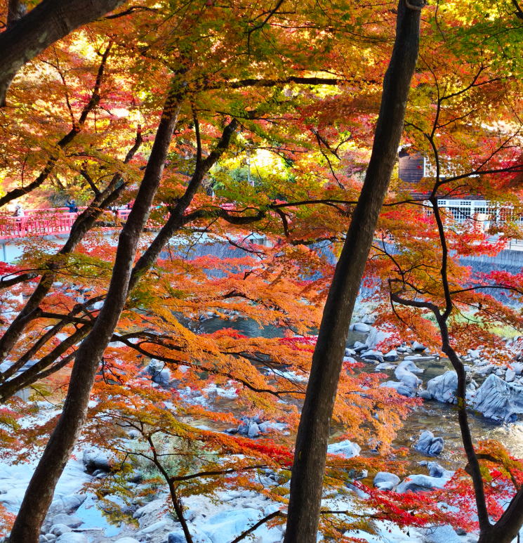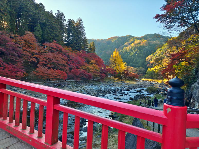 | 東海地区を代表する紅葉の名所・香嵐渓に8年ぶりの訪問。前回は昼間の景色とライトアップされた幻想的な風景を写真に納めてきました。今年の香嵐渓の紅葉はやや遅れ気味で、今日が見頃始まりといった紅葉景色でした。朝早く8時に到着し、1時間半ばかりのゆったりした散策で、美しく心に残る香嵐渓の紅葉を目に焼き付けました。もう再訪することはないでしょう。 |