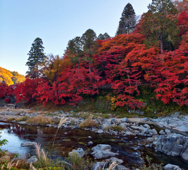 P3西町駐車場付近の紅葉群・・・今回で香嵐渓の紅葉は見納めでしょう |