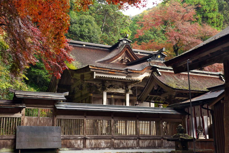 水屋の上の紅葉群・・・拝殿・本殿はもう直ぐです