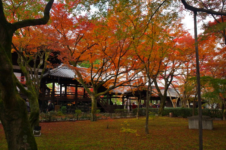 | 真如堂の紅葉はやはり期待した通りの見事な秋景色でした。総門に入るなり参道石畳の両サイド一杯に紅葉が広がり、それはそれは見事なものでした。特に、三重塔付近や本堂裏側の紅葉群は見頃となった秋景色で横溢し、これが紅葉です・・と言わんばかりの景色でした。今年の京都も紅葉の見頃が遅れていて、市内の大半は今がちょうど見頃になっているのでしょう。 |