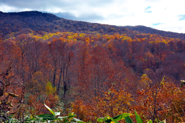 照葉峡を越えて目にした山並みの紅葉・・・ここで引き返しました |