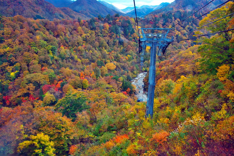 苗場ドラゴンドラと紅葉の |