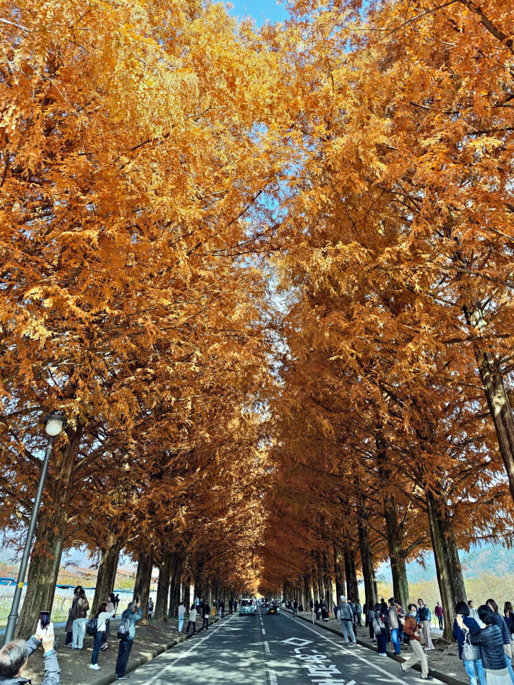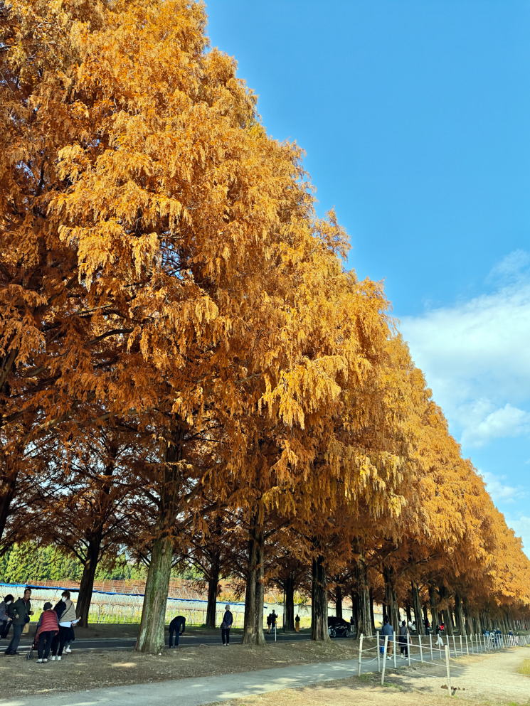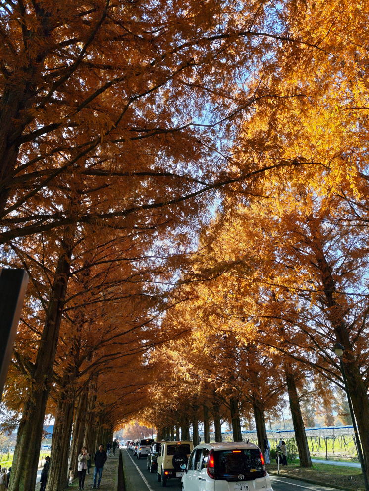 メタセコイア並木・・・まさに紅葉最盛期でしょう |
