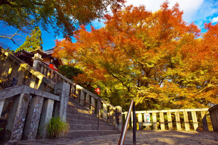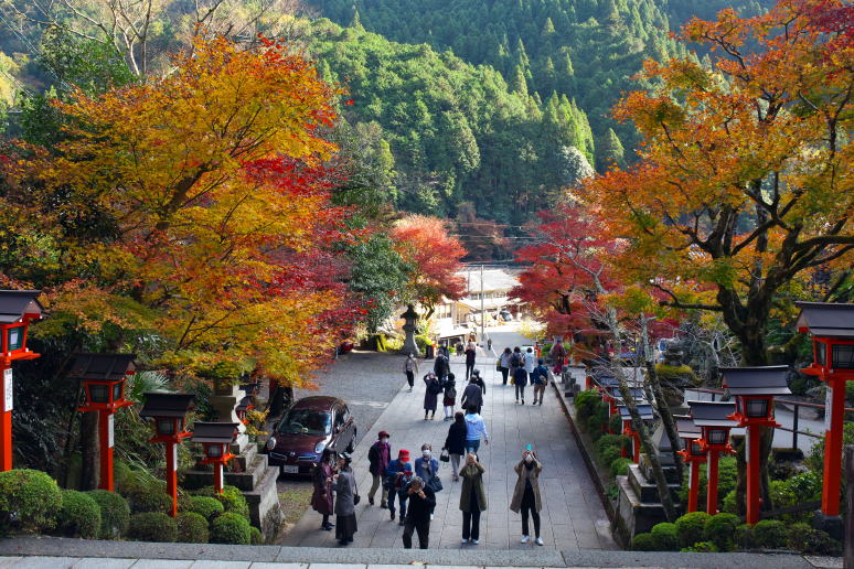 灯篭の参道を進む・・・趣のある紅葉景色です |