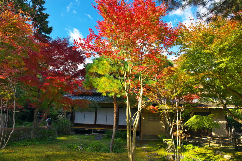 山荘に重なる紅葉・・・風情ある紅葉風景です |