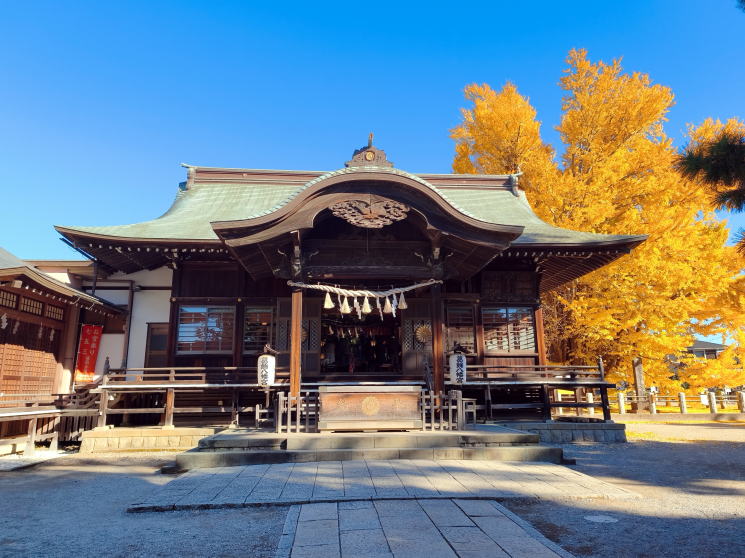千本公孫樹と本殿のツーショット |