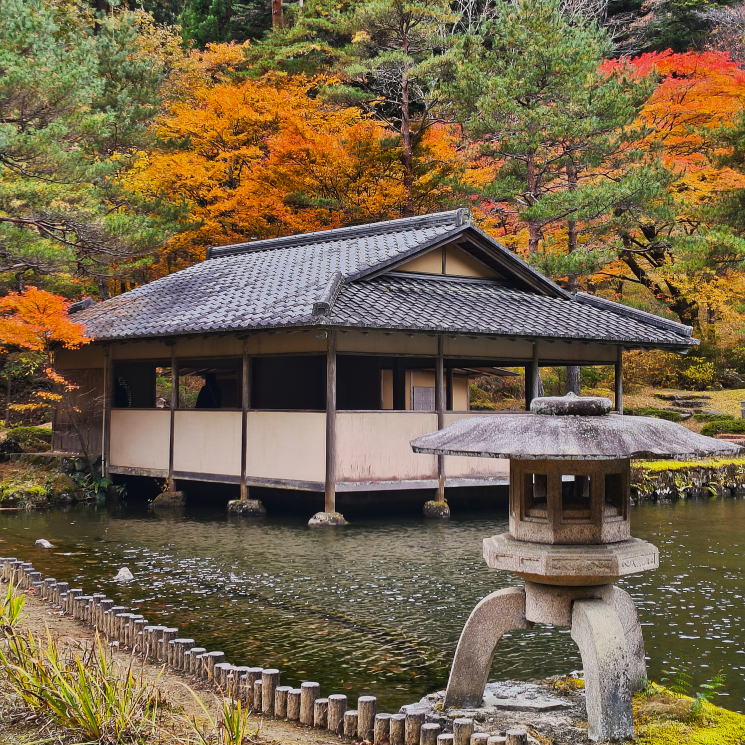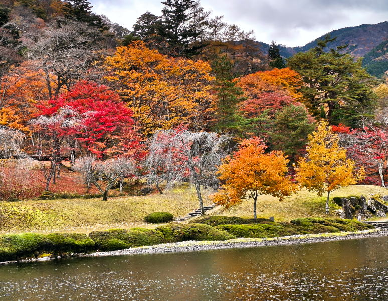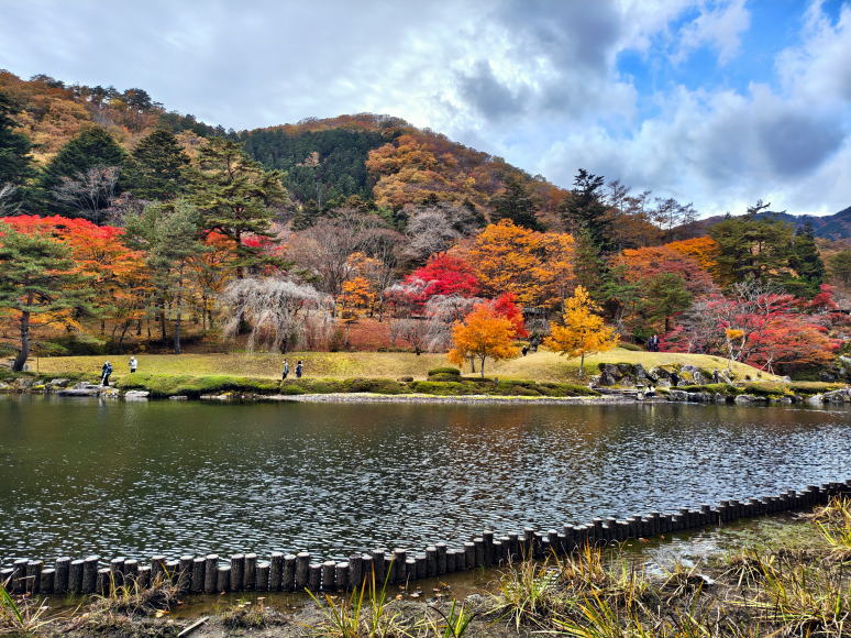 古峯園は25000坪の広さを持つという廻遊式日本庭園・・・峯の池から峯の茶屋方向を眺める |