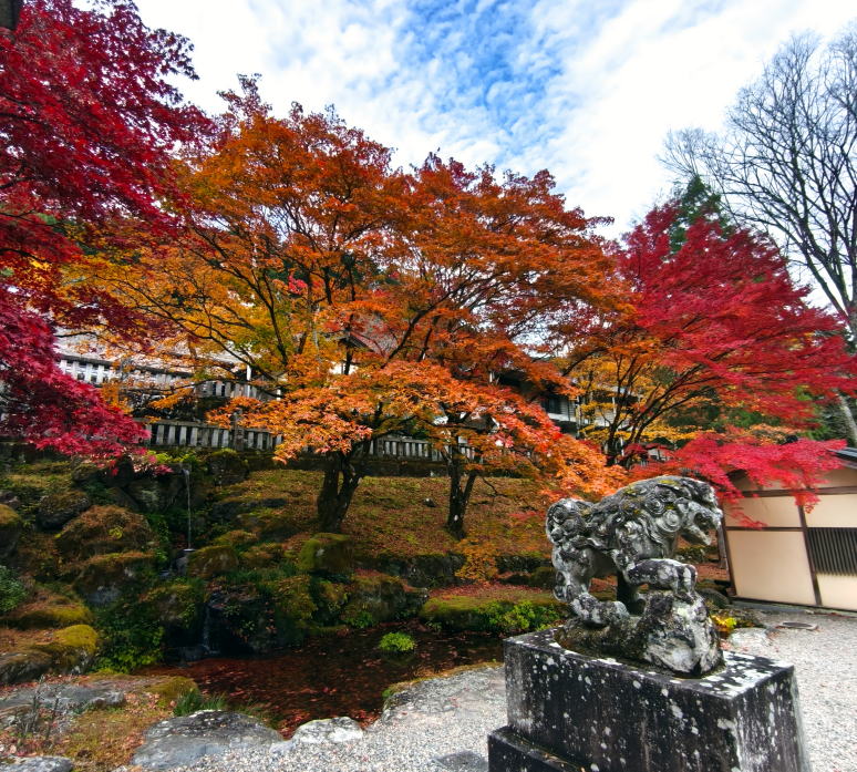 | 鹿沼市にある古峰神社の紅葉には15年ぶりの訪問。15年前の紅葉も大変きれいでしたが、今日の紅葉も以前と変わらず大変見事な紅葉景色でした。この古峰神社の創建は比叡山開山(785年)より古く、日本の山岳仏教の先駆けとなった勝道上人(しょうどうしょうにん)が修行した神社でもあるという。勝道上人は日光「輪王寺」の前進「四本龍寺」を大谷川(だいやがわ)側の対岸に766年開山した僧侶とのこと。結構な山奥にこんな素晴らしい神社があることに驚きです。 |
