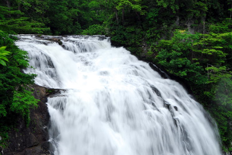 圧倒的な水量をほこる三条の滝・・・落差は「三十条(約100m)」、巾30mという巨瀑