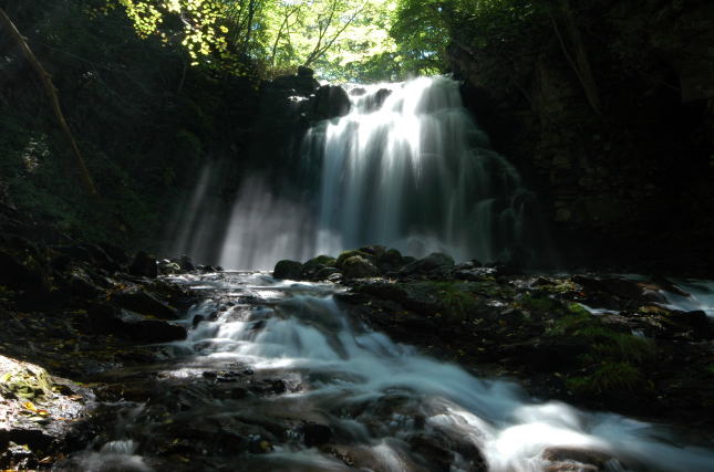長野原町北軽井沢周辺で最大の滝がこの浅間大滝です。水量も豊富、迫力満点の浅間大滝はかなり遠くからも水音が聞こえ、この音が静寂な林に吸収されていく感じです。滝行をする人も多く、冬の氷瀑もまた見ものと聞きました。この下流歩いて5分くらいのところに魚止めの滝があります。