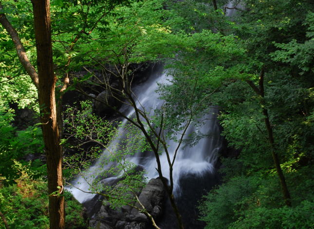 | みどり市にある群馬県一の落差(96メートル)を誇る小中大滝は名物つり橋「けさかけ橋」を渡ってしばらくすると瀑音とともに見えてきました。なお、小中大滝への道は工事中で車が通れず、やむなくカメラを担いでの徒歩行軍、疲れもピークに達したころようやく滝への入口にたどり着きました。そして、自然美たっぷりの小中大滝に癒されながら写真を撮り、思いっきり深呼吸をして下りになった帰り道を颯爽?と車まで戻りました。 滝の撮影がこんなに運動不足を解消してくれるとは・・滝への挑戦意欲がますますわいてきます。 |