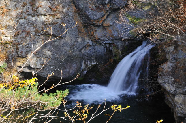 三滝山からの帰り道、相木川にかかる箱瀬の滝に立ち寄りました。深い渓流を橋上からのぞき紅葉に彩られた箱瀬の滝に目を見張りました。周囲の紅葉も素晴らしく、北相木村訪問も心に残る一ページとなりました。