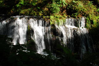 | 軽井沢の名所・白糸の滝は高さ3m、幅70mの苔むした黒い岩肌に白糸のカーテンが垂れ下がり実に美しい景観を醸し出しています。この滝の水源は浅間山の伏流水でありよって、透明度が高く雨の後でも水の濁りは殆どないという。そして、四季折々の美しい景観は多くの観光客を魅了しつづけ、その一人の私もきょうは十二分に堪能しました。 |