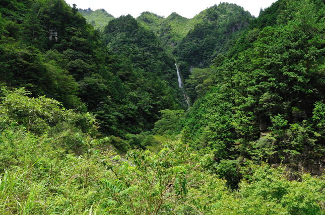 | 一緒に来た吉野町のおばさんもこの隠れ滝に興味があってぜひ見たいという。この隠れ滝の位置など一応調べていたのだが、すっかり間違えてとんだ方向に案内してしまった、疲れも手伝って汗顔の至りでした。でも、遠望からの隠れ滝が見えたのとなんとか滝下まで行けたのでよかったです。今の時期、水量が多くなんとか巨岩を乗り越えたのはいいがその先に進めず、納得の写真は撮れませんでした。それにしてもこの隠れ滝素晴らしいです、日本の滝100選でも十分納得するでしょう。 |