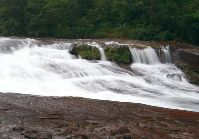 カンピレーの滝の下流側・・・岩盤とエメラルドグリーンのコントラストが美しい