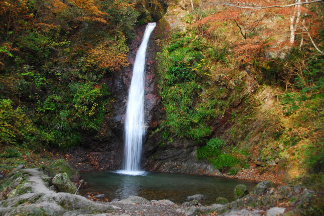 | 埼玉県皆野町の日野沢川にかかる秩父華厳の滝は落差10数mの紅葉に彩られた品格ある滝でした。そして、秋にもかかわらず水量も多く、滝壷から出るマイナスイオンを浴びながら滝周辺を散策し沢山の写真をカメラに収めました。この秩父華厳の滝は日光の華厳の滝に似ていることからこのような名前が付けられたという。山あいの静かな里に落ちる可愛い滝でした。 |