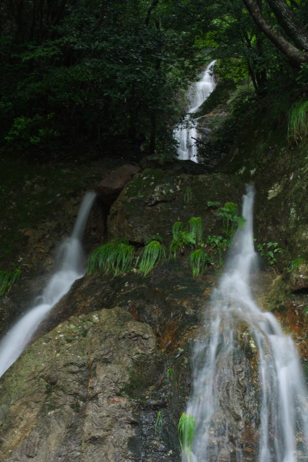 隠岐の島のR-485号から中谷林道を走ってトカゲ岩展望台に向かう途中、右手の谷合から見事な水流の滝を見つけました、名前があるのか少し調べましたが分からず無名滝として載せてみました。落差はかなりのものでしょう、また、最近の雨で一気に増水したものなのか・・・。
