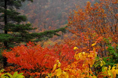 雨の登山道、疲れもピーク 紅葉にやっとレンズを向ける |