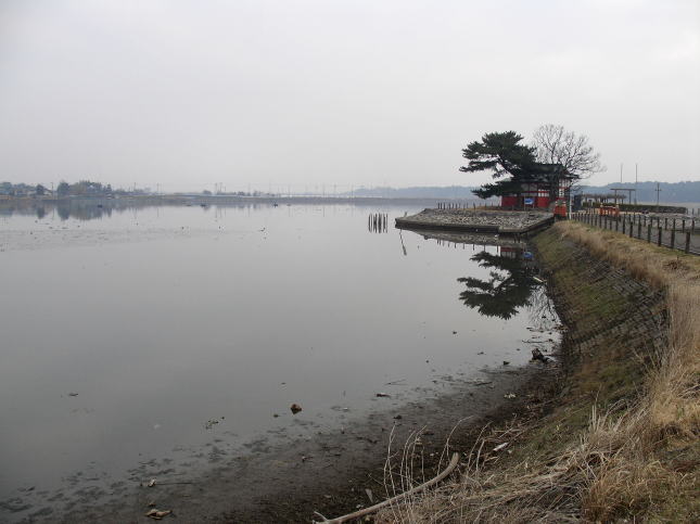浮島橋から見る弁天神社 鳥居と弁天神社 |