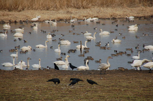 「ガバ沼」・・・ここが給餌場とのこと、沢山のハクチョウが集まっていました |