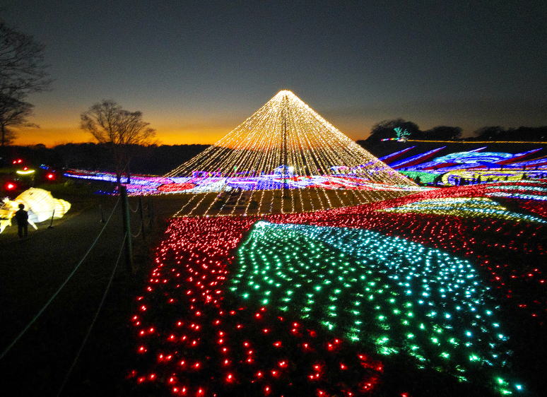 見晴らし台から・・・東京ドイツ村イルミネーションのほぼ全景を見渡す |