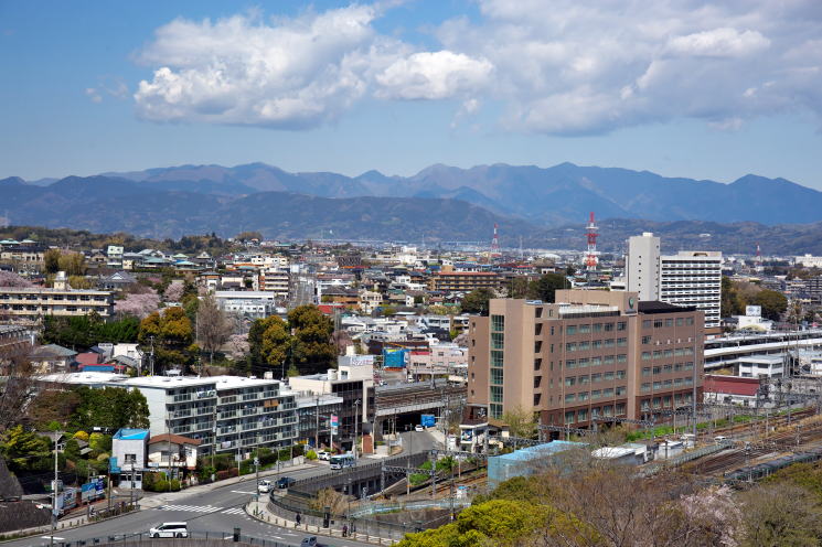 天守閣・最上階からの眺め・・・箱根山方向 |