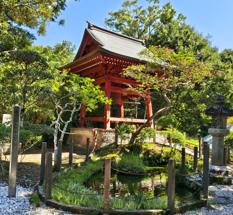 千尋の池(手前)、奥に鐘楼堂 |