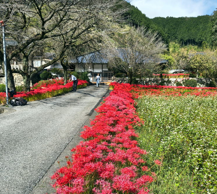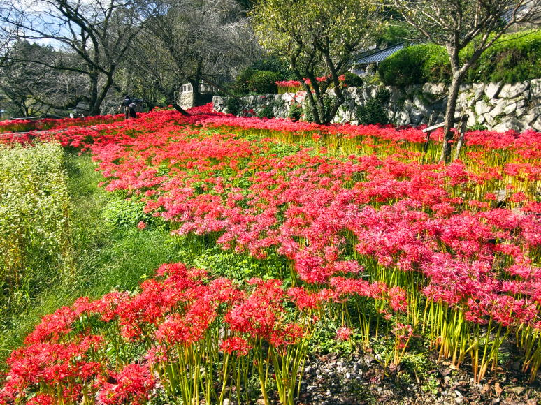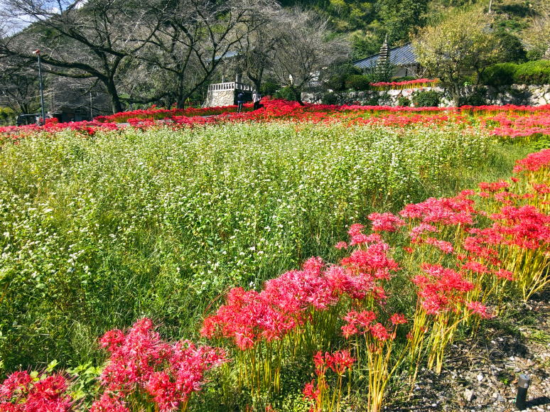 鹿沼市の郊外にある常楽寺(じょうらくじ)の彼岸花を見に訪れました。常楽寺は、地元で「録事様」と呼ばれ親しまれているお寺で、秋になると真っ赤に染まる彼岸花の咲くお寺としても有名なようです。今回、開花状況を見ながら訪問したので、満開に咲く彼岸花を愛でることができました。境内にはそばの花も咲いており、彼岸花とのコラボ写真も撮れて満足です。 |