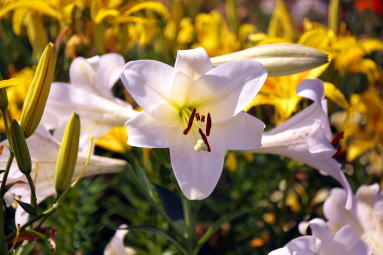 黄色ゆりの前に来て・・・すかし系ゆりの代表格