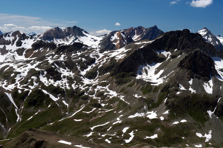 上の写真からさらに右手、ピッツ・コルヴァッチュ方向の山々 |