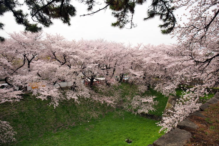 名古屋城東側の石垣と桜