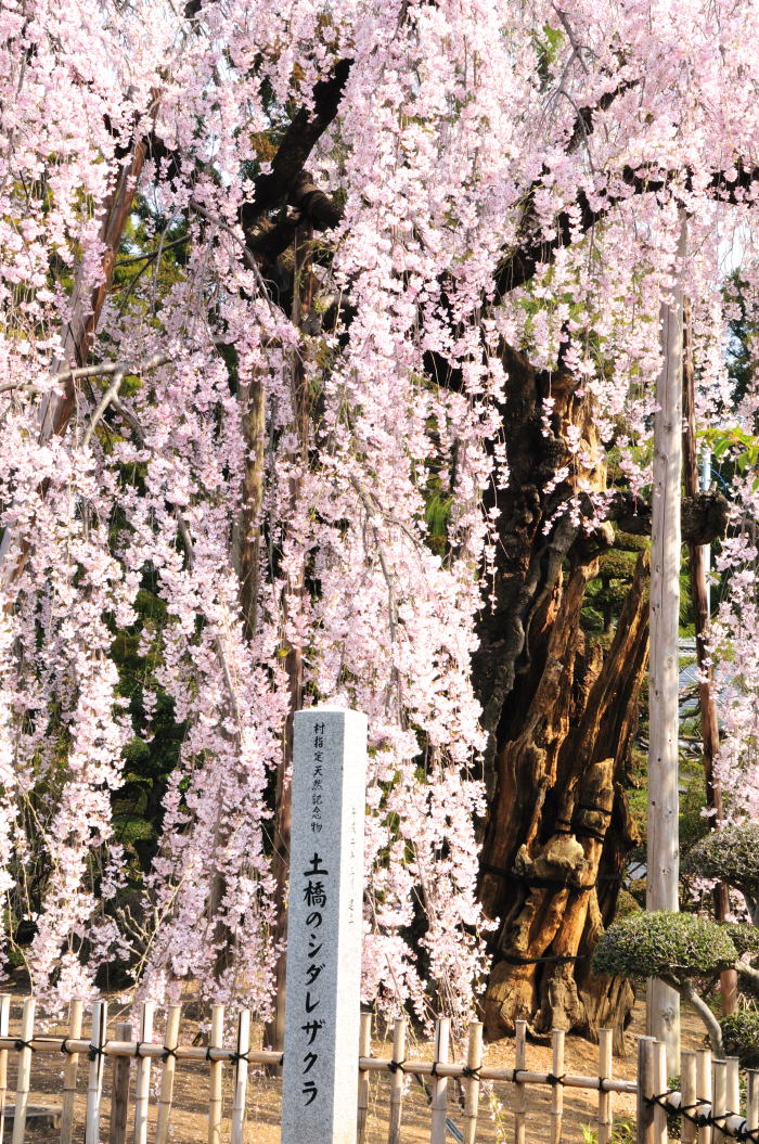 アングルを少し変えて・・・樹齢推定400年という枝垂れ桜、見事な花付きです