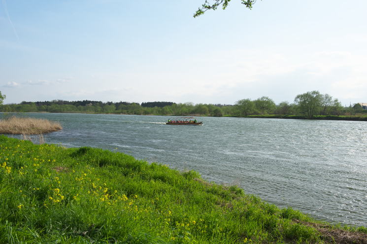 渡し舟乗り場付近から北上川を望む・・・上る遊覧船です